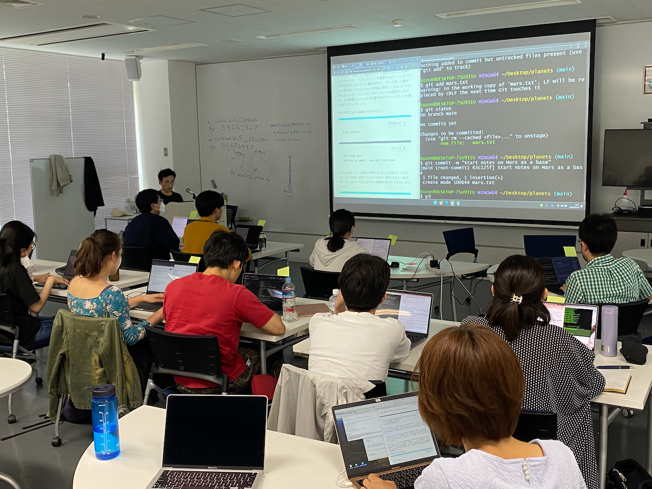 インストラクターが入力するコードを、同時に自分のパソコンで入力します。